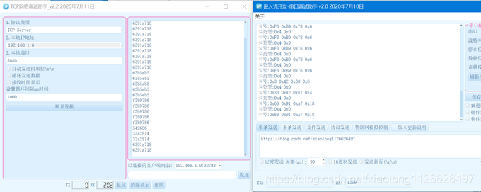 (3). (管理员操作)开卡和查询的数据传输:? 设备端与软件端采用 TCP网络方式进行通信;设备端当做TCP客户端,软件端当做TCP服务器;当设备端查询产品的电子标签时,设备端读取编号之后,会通过约定的数据格式通过网络传递给软件端。 当软件端开卡注册时,也会用约定好的数据格式传递给设备端,如果设备端收到数据,开发板上的LED会点亮;这时把IC拿到RC522射频模块上刷一下即可;如果成功写入LED灯就会关闭。