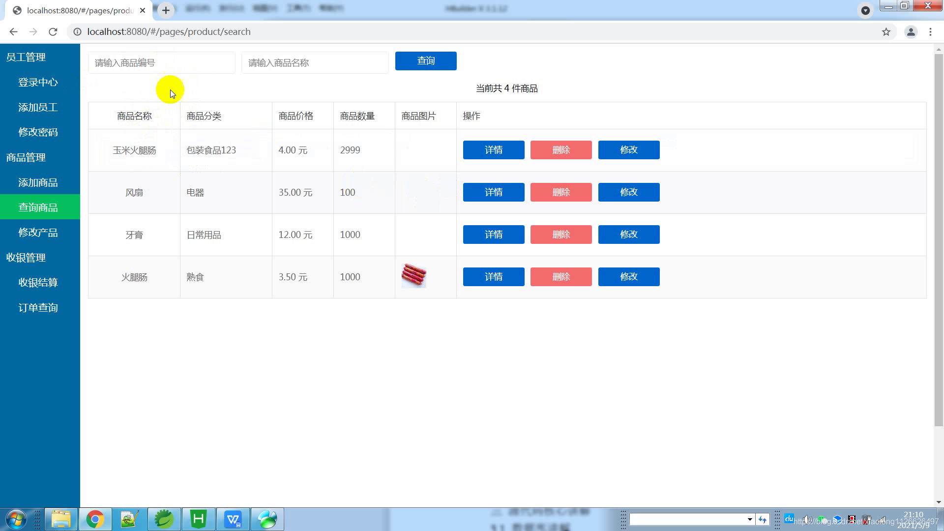 主界面上显示店内有所有登记入库的商品信息,每个产品有图片进行显示、图片下面就显示产品的数量与价格;