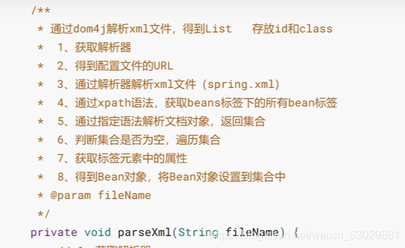 // 2、解析配置文件,得到对应的bean标签的id与class属性值,并设置到对应的bean对象中,存放到ist集合里