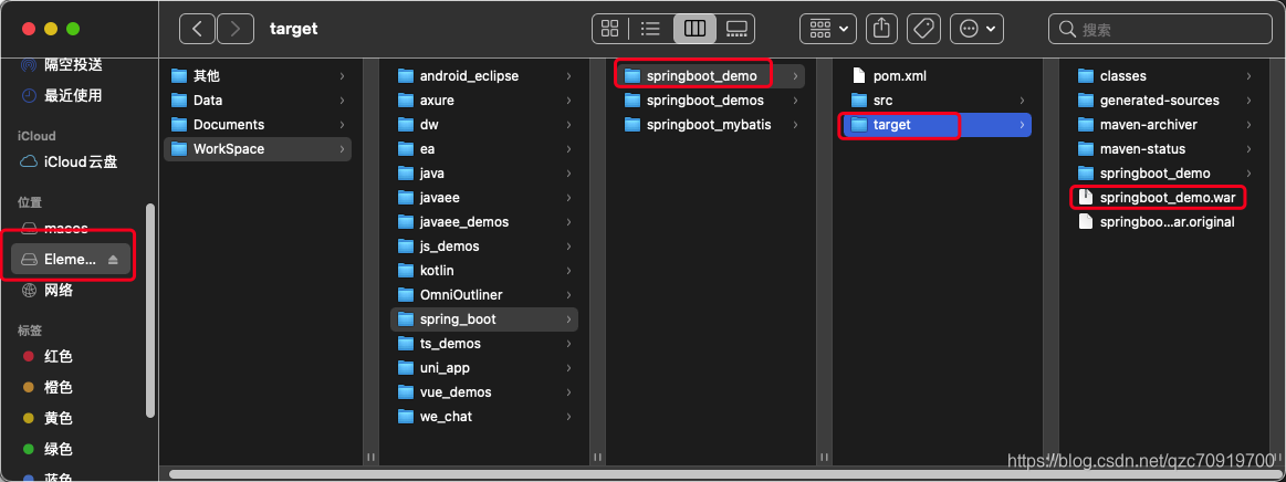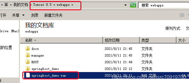 当启动tomcat时,war包会自动解压缩,启动成功之后浏览器访问:http://127.0.0.1:8080/springboot_demo/users?