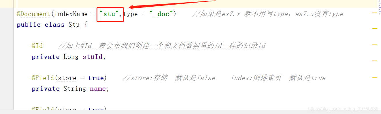 ?会自动识别到在Stu实体类里indexName = "stu"