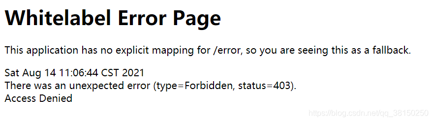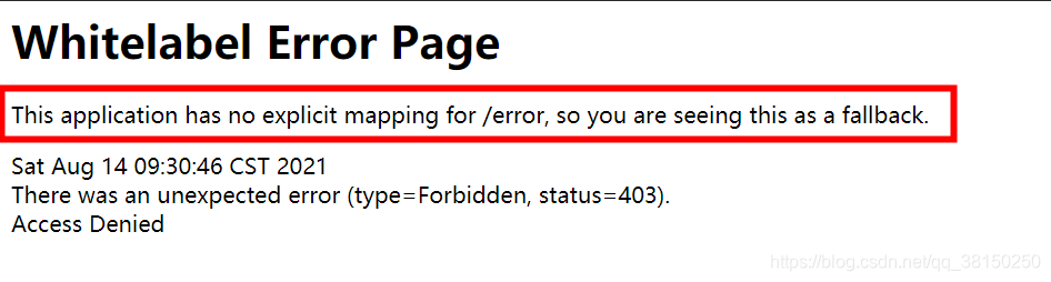 ? ? ? ? 从返回的信息中看到这么一句话,大致意思就是没有 /error 路径的映射。