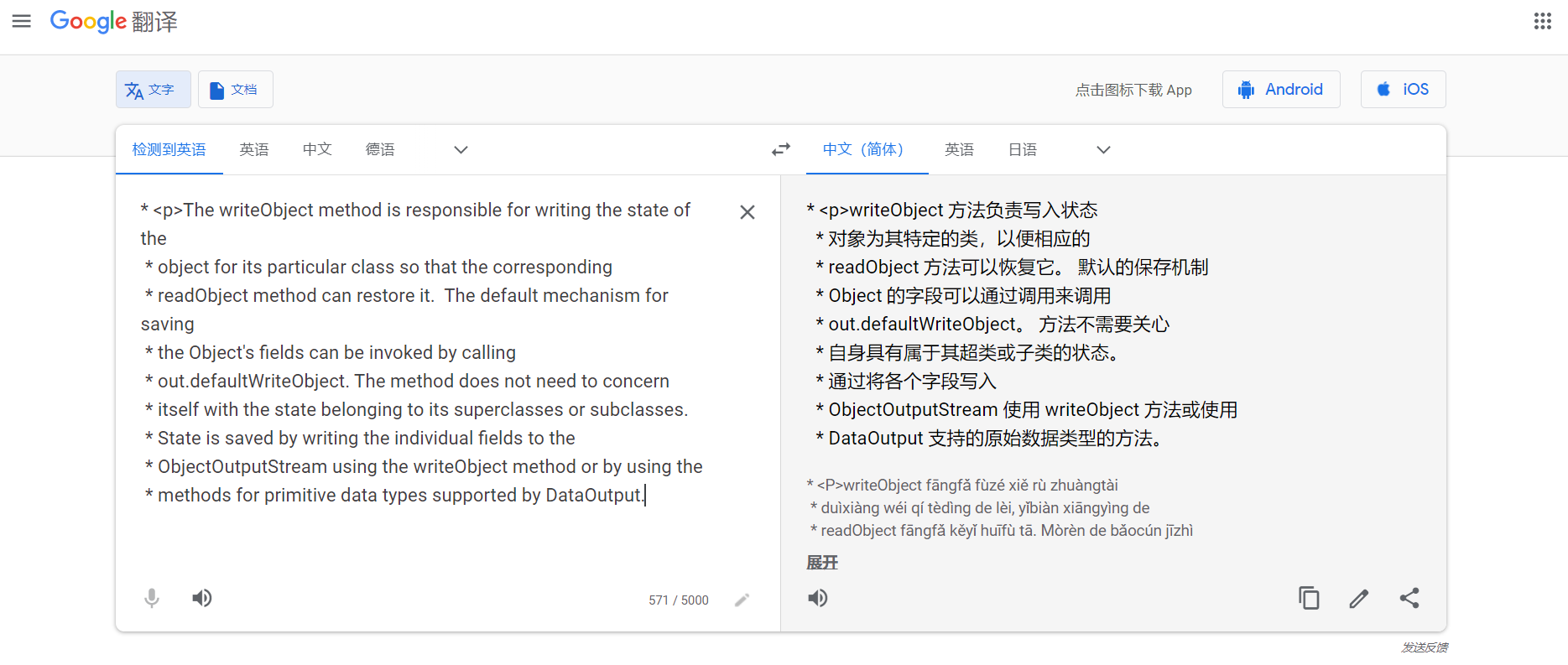 大概翻译一下writeObject 和readObject