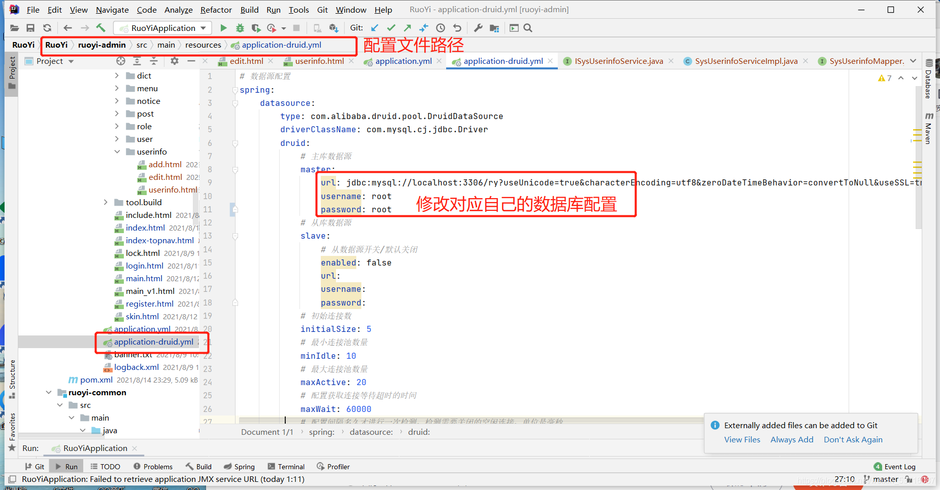 1.修改? application-druid.yml? 配置文件