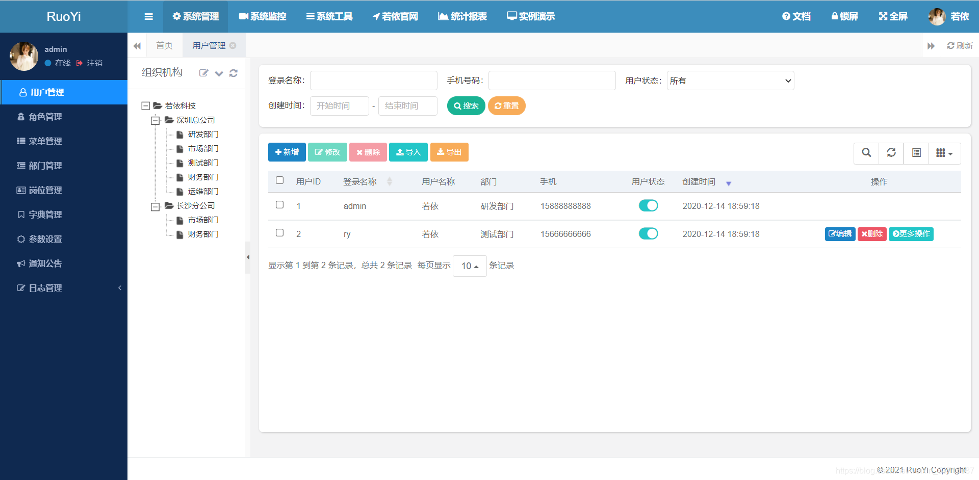 ?源码地址:https://gitee.com/y_project/RuoYi