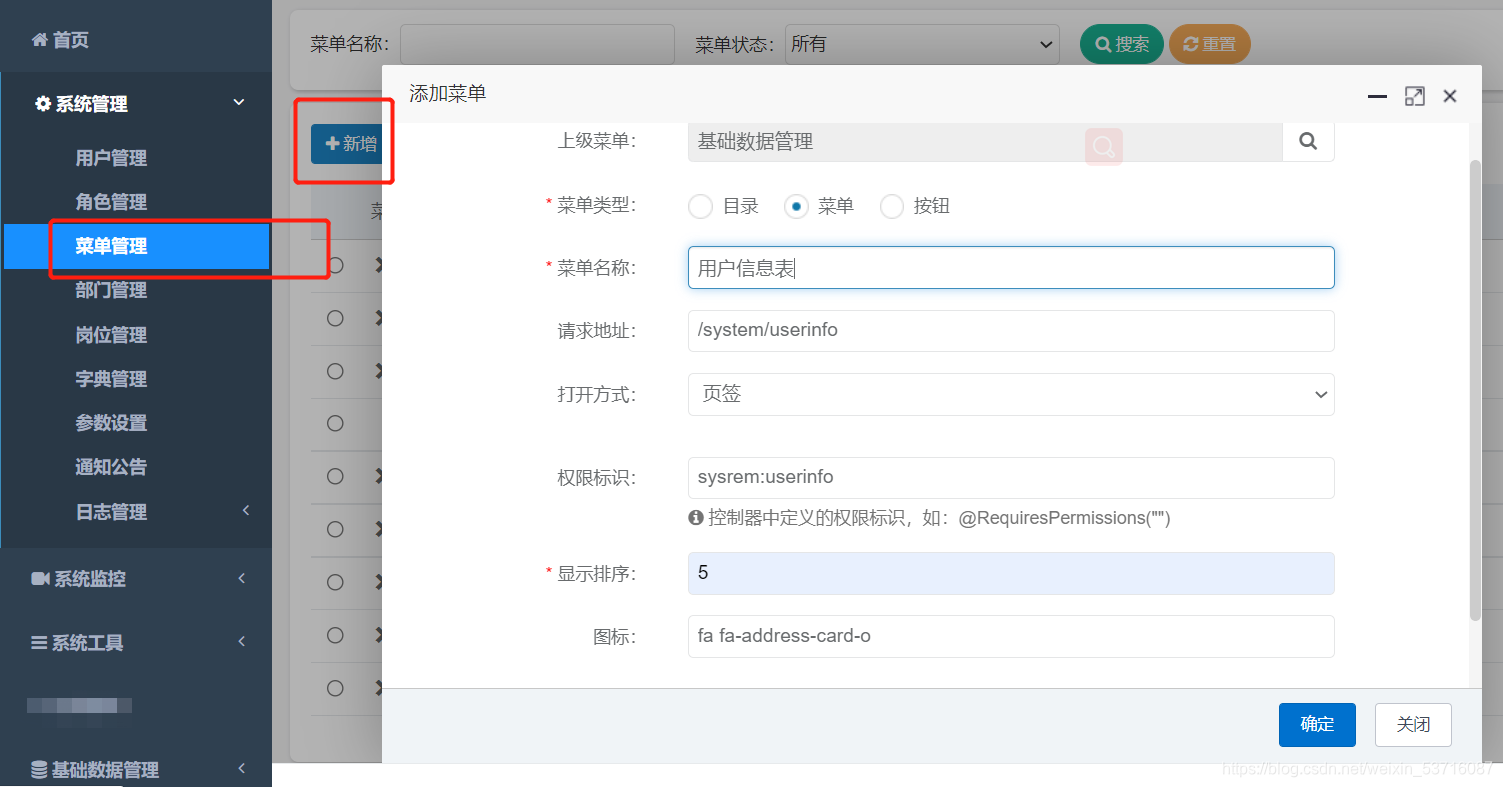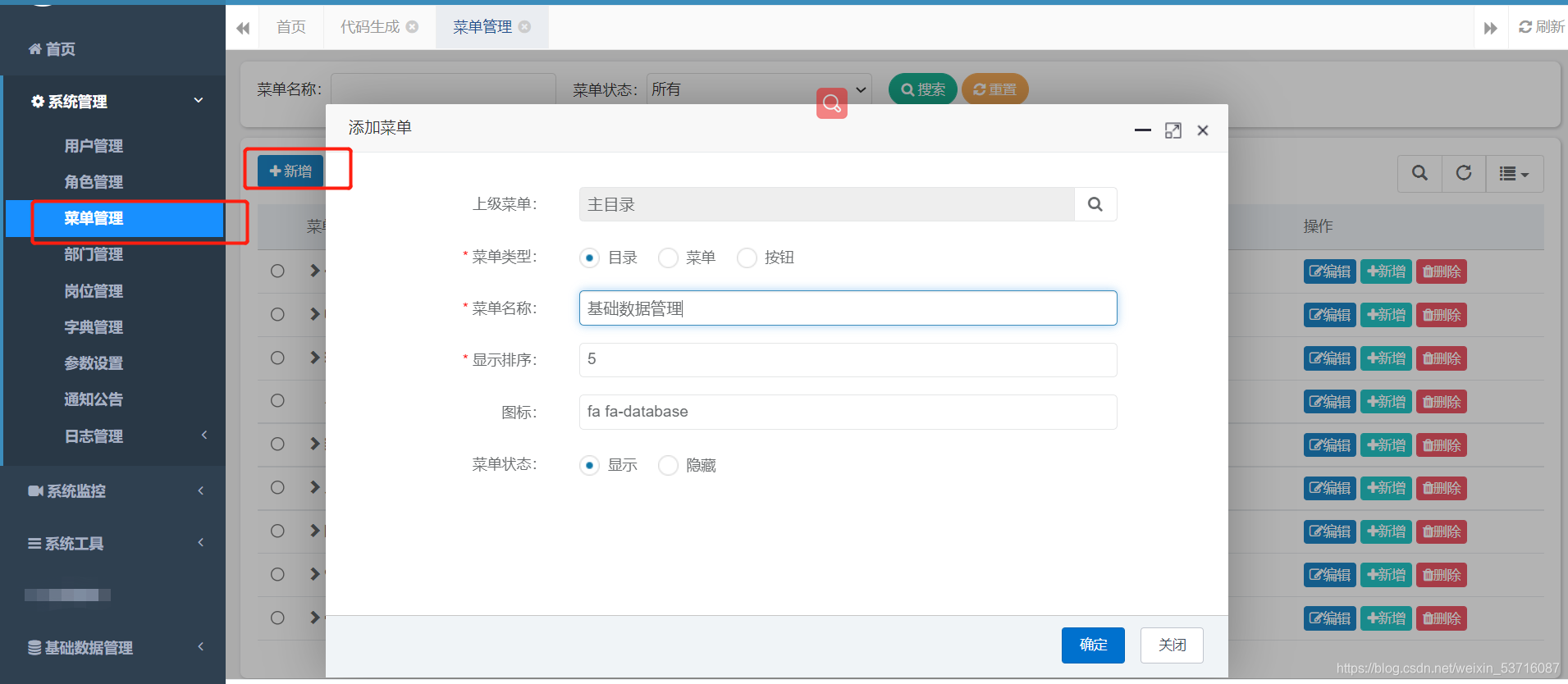 三.?若依系统中新建一个目录-基础数据管理