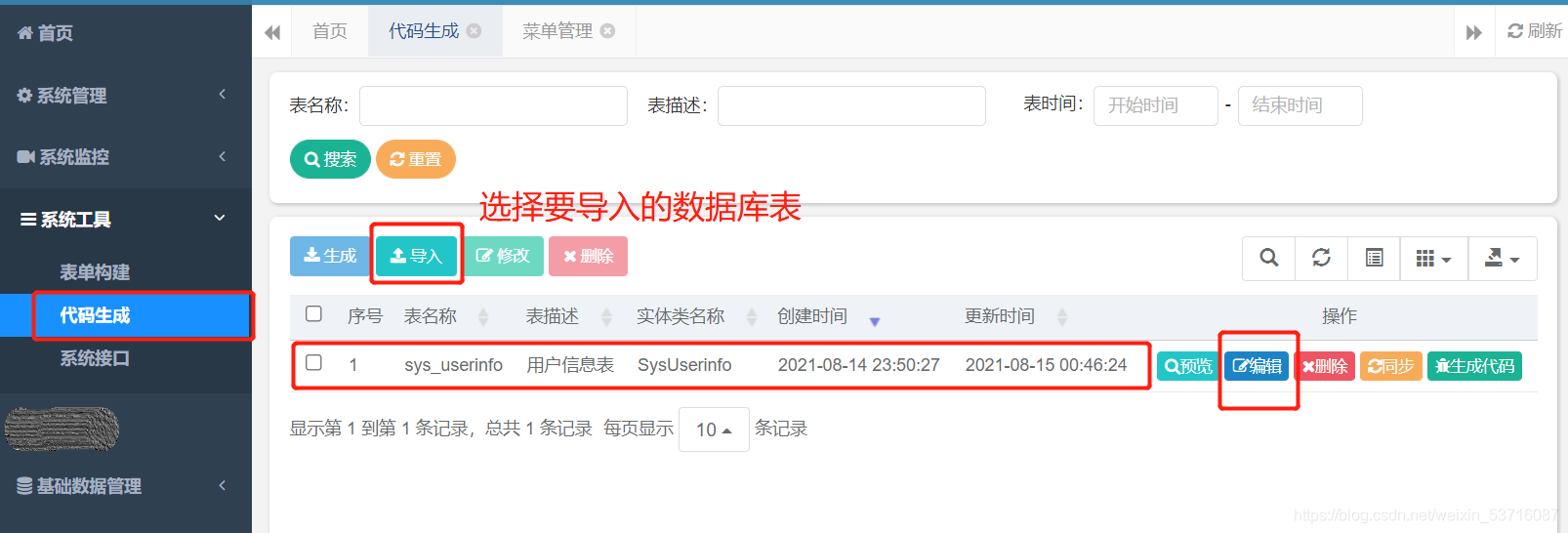 五.导入创建的数据库表并设置上级目录,生成代码