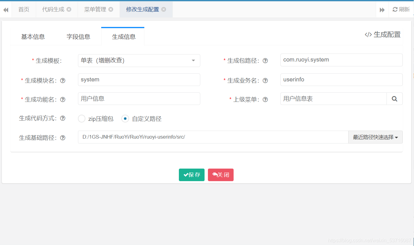 packageName: com.ruoyi.userinfo# 默认生成包路径