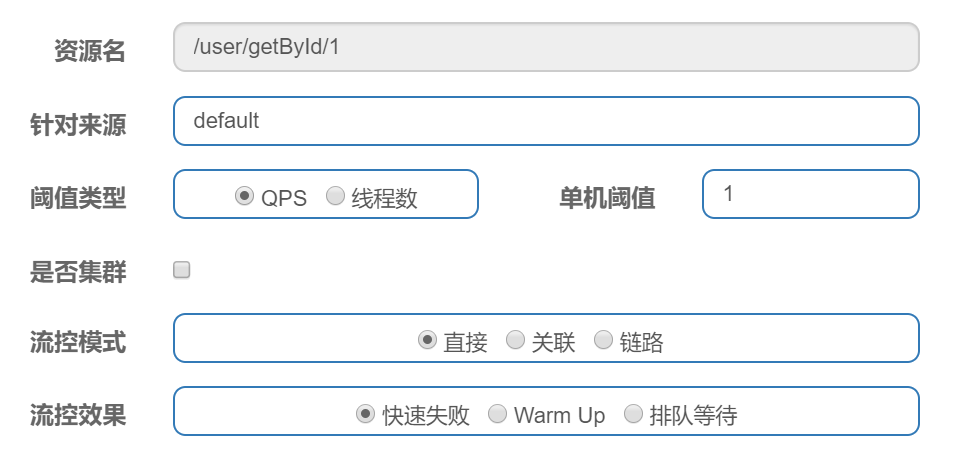 使用@SentinelResource需要注意: 配置了@SentinelResource注解的方法都视作资源,可以配置在@RequestMapping("/user/findOrderByUserId/{id}")修饰的接口层,也可以配置在service层,如果配置在了接口上,则sentinel会产生两套资源链路,一个是@RequestMapping中的value属性的"/user/findOrderByUserId/{id}"链路,一个是@SentinelResource(“findOrderByUserId”)配置的"findOrderByUserId"链路 (1)如果这两个链路都配置了规则的话,默认会先执行接口产生的链路; (2)如果没有为接口配置规则,就会执行@SentinelResource的资源链路。