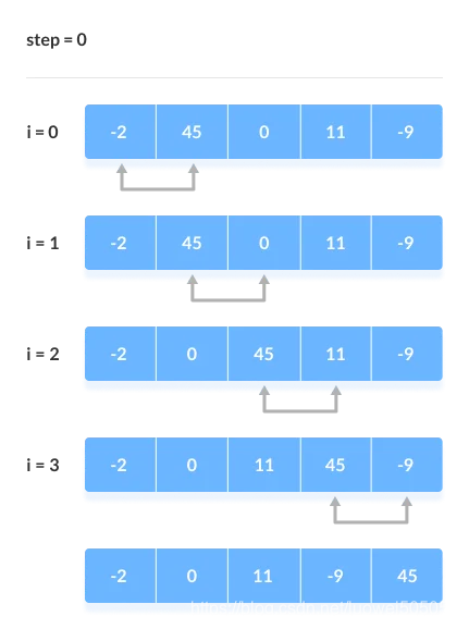 1.第一次迭代(比较和交换)