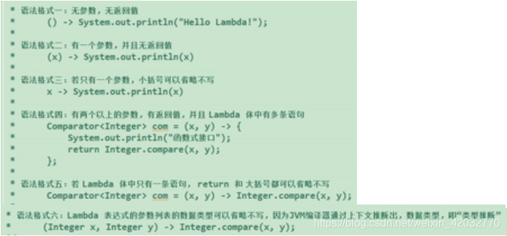 Lambda 表达式在Java 语言中引入了一个新的语法元素和操作符。这个操作符为 “->”, 该操作符被称为 Lambda 操作符或剪头操作符。