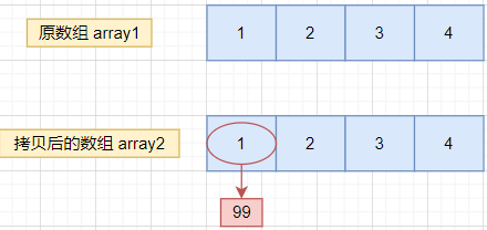 如果将 array2[0] 改成 99,array1[0] 不会被影响,这种拷贝就是深拷贝