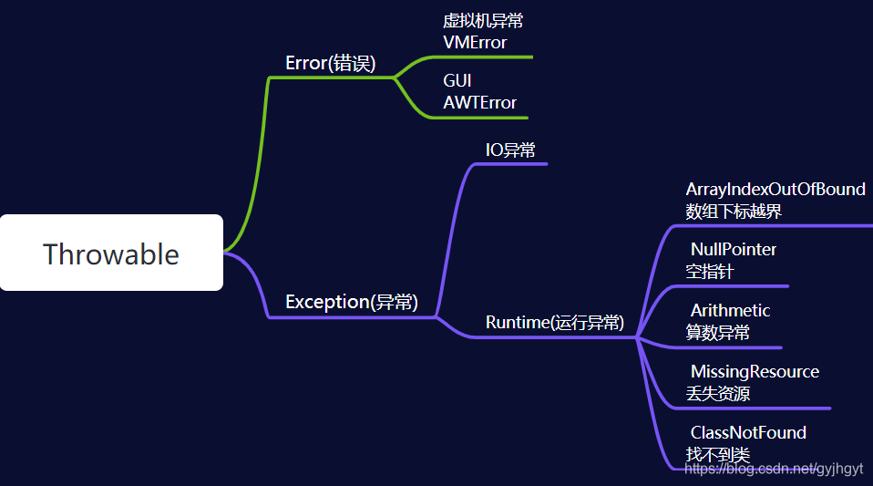java中将异常当做对象处理,所有异常基于一个基类java.lang.Throwable