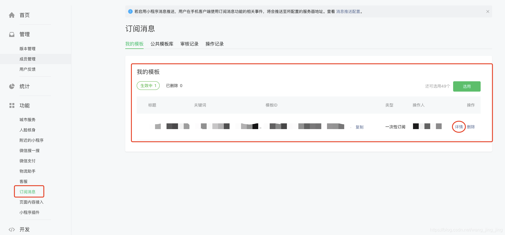 2.2、获取下发权限(此为小程序端出发,详情见官方文档:传送门)