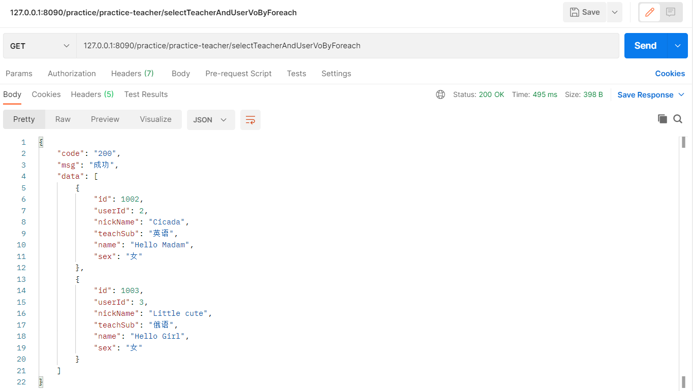 public List<TeacherAndUserVo> selectTeacherAndUserVoByForeach() {