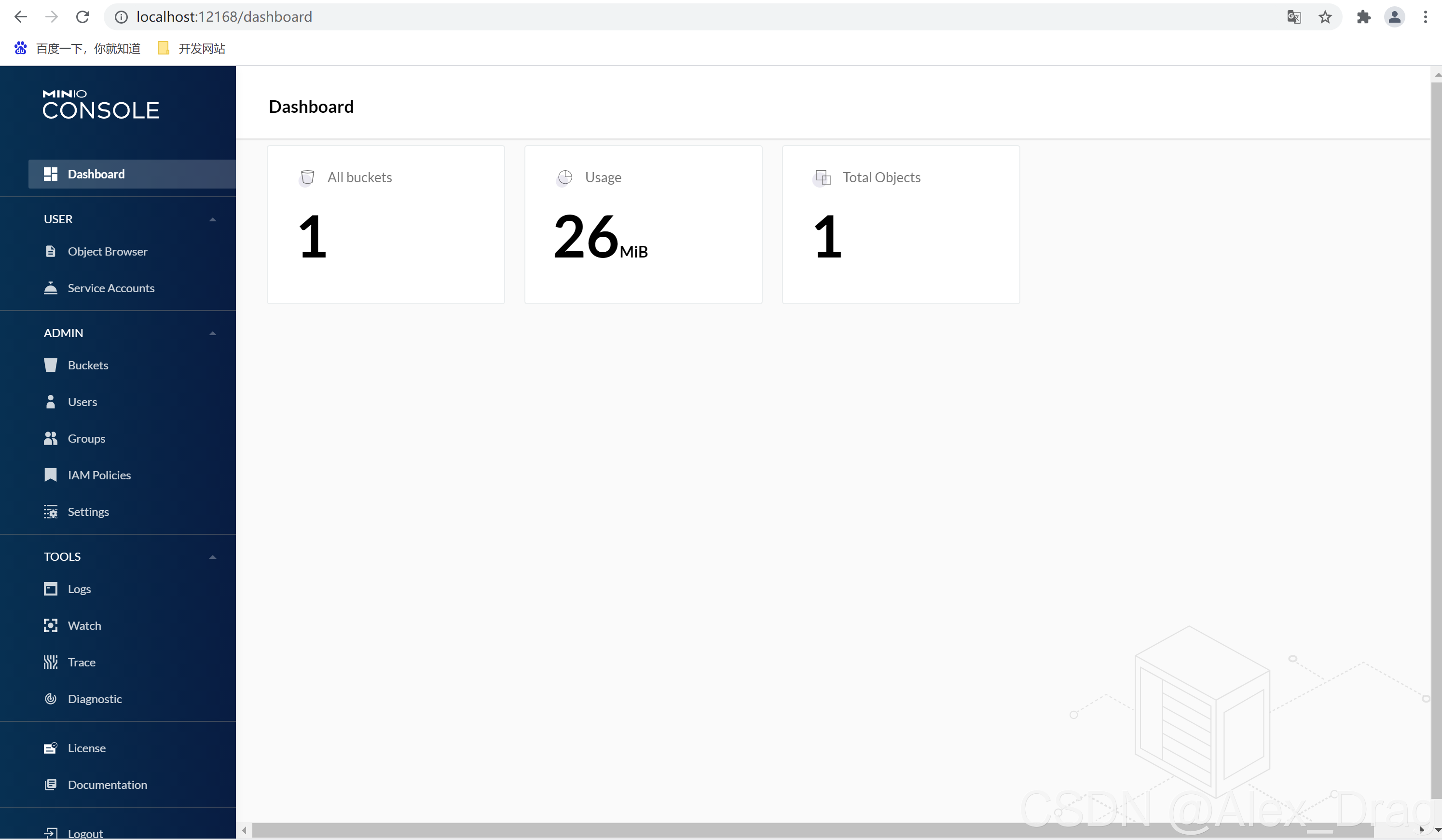$ mc.exe alias set myminio http://192.168.31.90:9000 minioadmin minioadmin