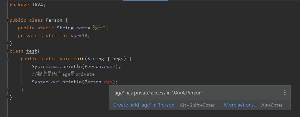 1.static关键字不会改变类中成员的访问权限 Java中的static关键字不会影响到变量或者方法的作用域。在Java中能够影响到访问权限的只有private、public、protected(包括包访问权限)这几个关键字。示例如下: