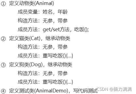 ? 需求:请采用抽象类的思想实现猫和狗的案例,并在测试类中进行测试。