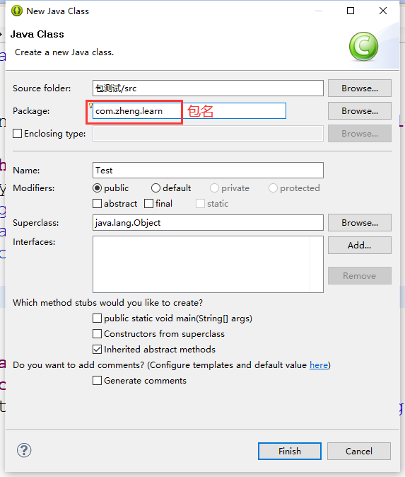 我们在建立一个class的时候添加一个自己的包: