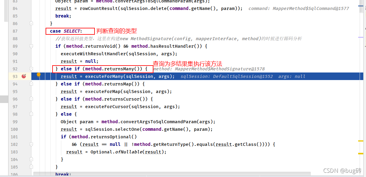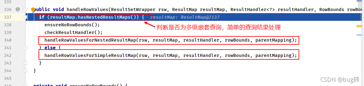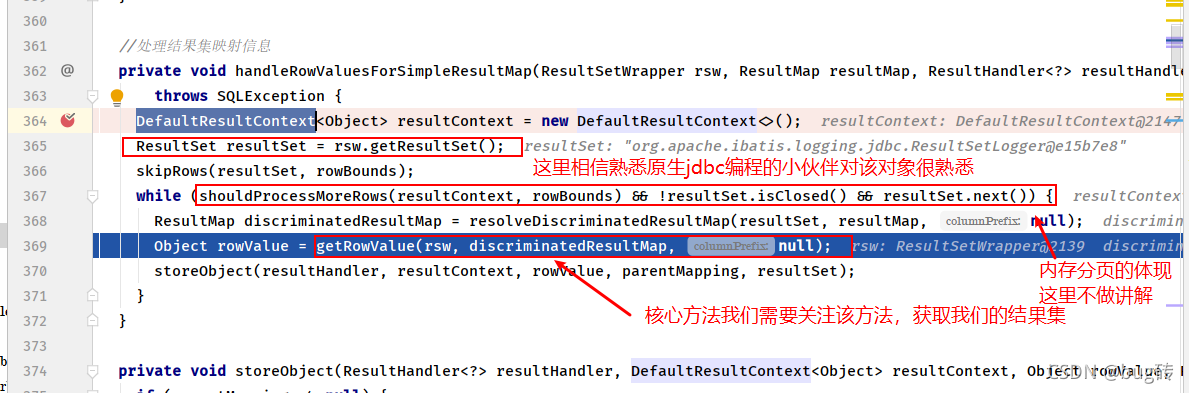 在这次测试当中我们是处理的简单的结果集,调用的方法handleRowValuesForSimpleResultMap()