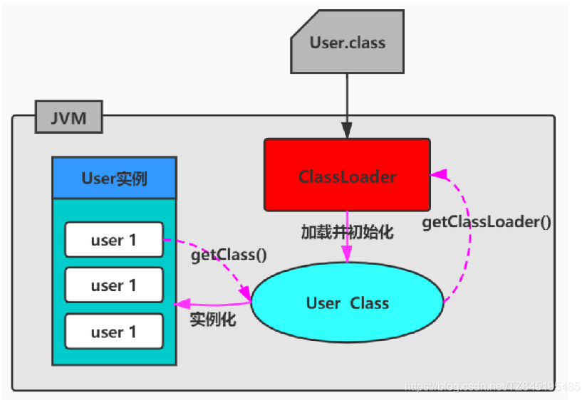 ②. class文件的显式加载与隐式加载的方式是指JVM加载class文件到内存的方式(在日常开发以上两种方式一般会混合使用) 1.显式加载:指的是在代码中通过调用ClassLoader加载class对象,如直接使用Class.forName(name)或this.getClass().getClassLoader().loadClass()加载class对象 2.隐式加载:则是不直接在代码中调用ClassLoader的方法加载class对象,而是通过虚拟机自动加载到内存中,如在加载某个类的class文件时,该类的class文件中引用了另外一个类的对象,此时额外引用的类将通过JVM自动加载到内存中。比如 new User()