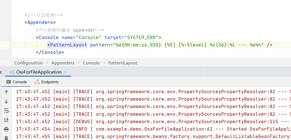 <Pattern>${CONSOLE_LOG_PATTERN}</Pattern>