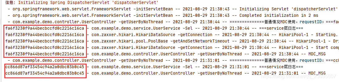 - log4j、log4j2自身对MDC已经做了优化,所以如果springboot整合的是log4j、log4j2就不需要考虑MDC同步和异步的问题,如: