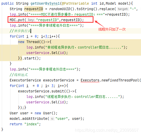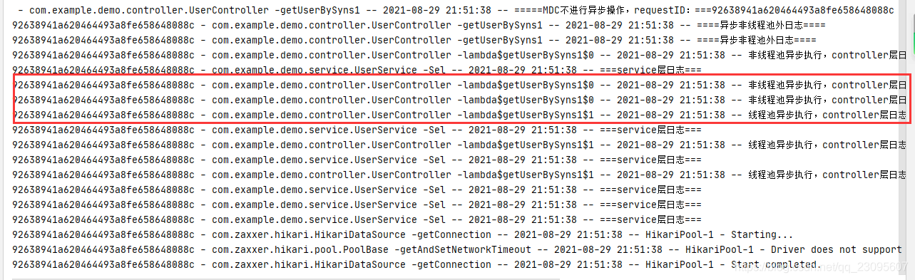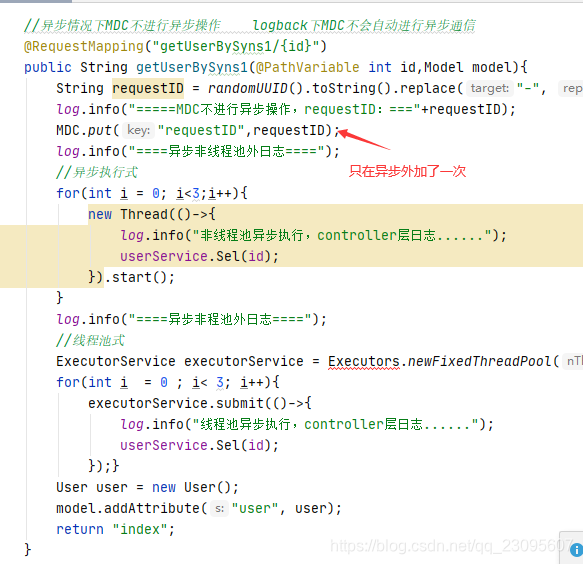只在异步前加了一次MDC,然后日志只要是异步的,MDC就传输不到