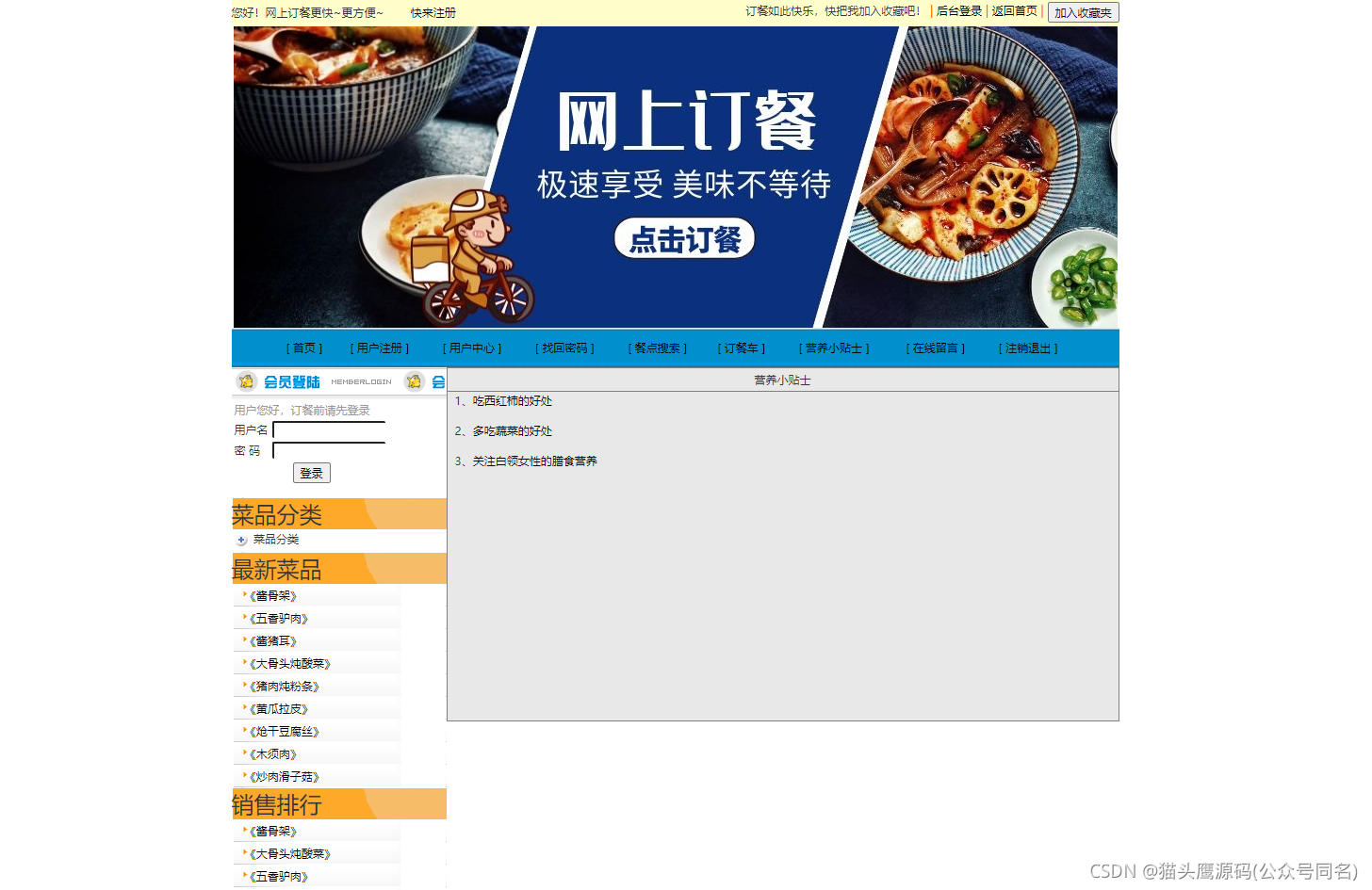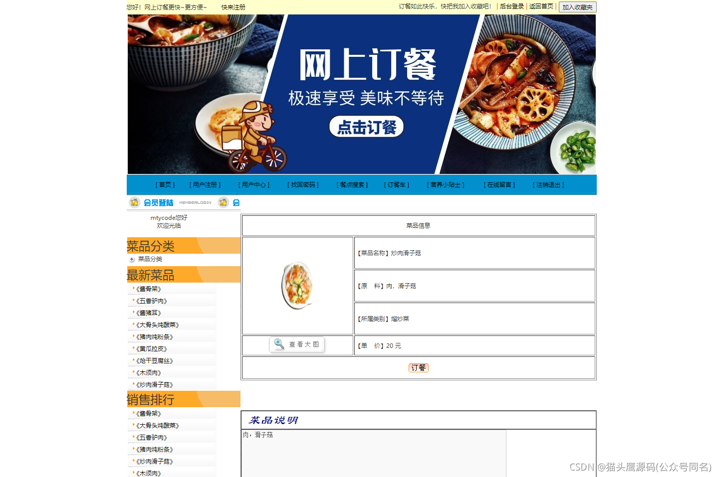 该系统使用Java语言,servlet技术,mysql数据库,具有基本的订餐业务功能,适合基本一般的同学使用,包含参考论文等文档。