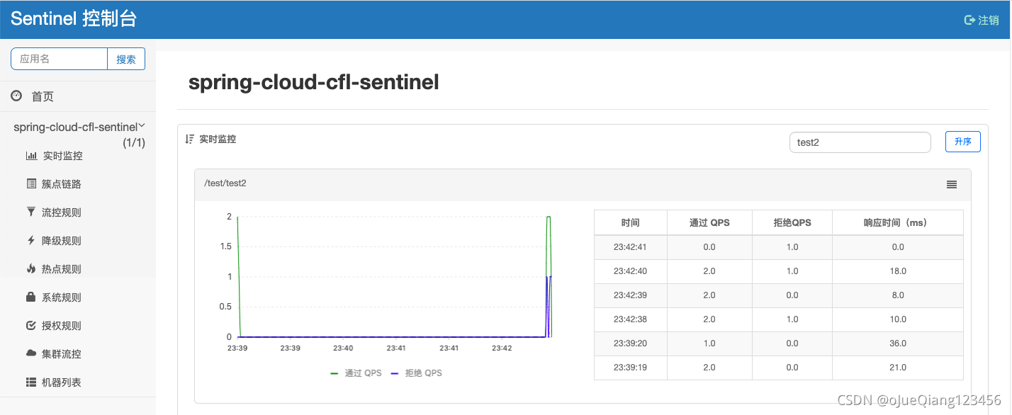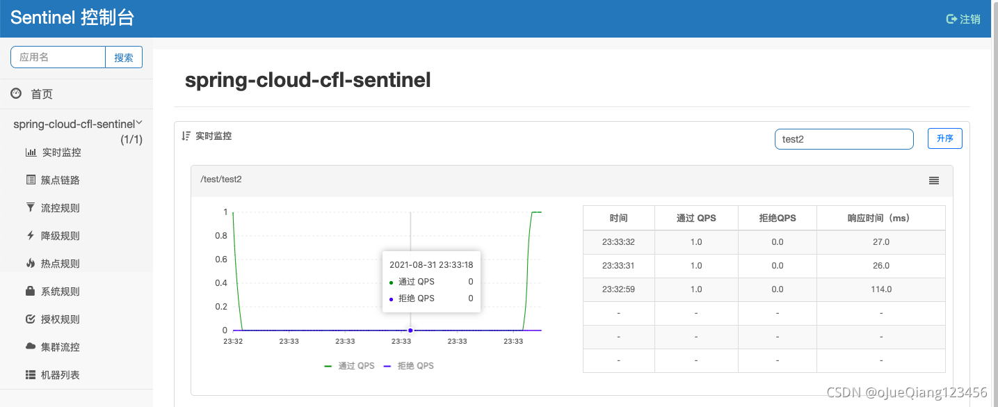 - ?可以看到最大通过的QPS就是上面做设置的2,有被拒绝的QPS