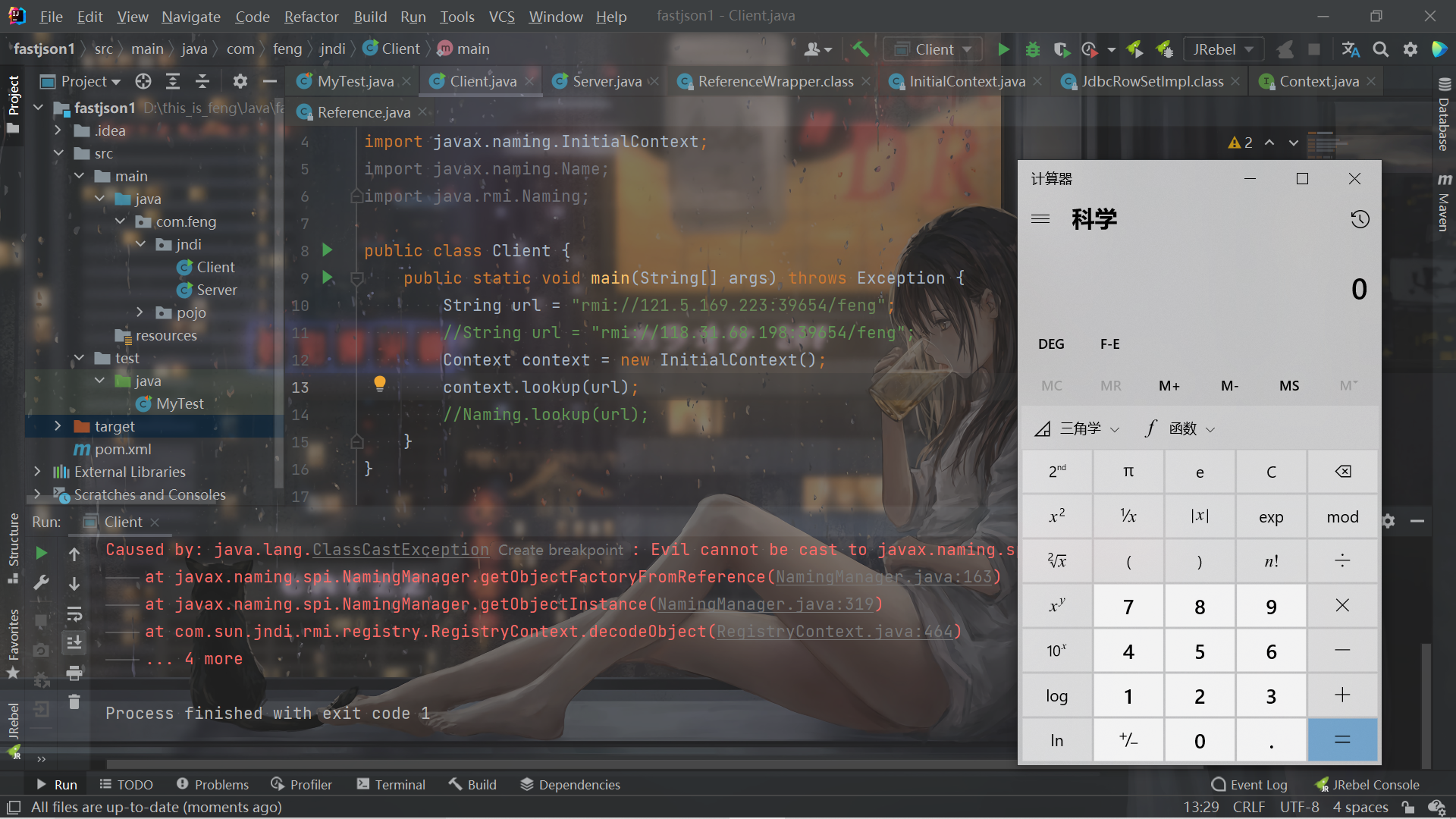 因此相当于利用RMI去动态加载类。RMI服务那里绑定了一个对象,然后通过JNDI 去获取RMI对应的绑定的那个对象。