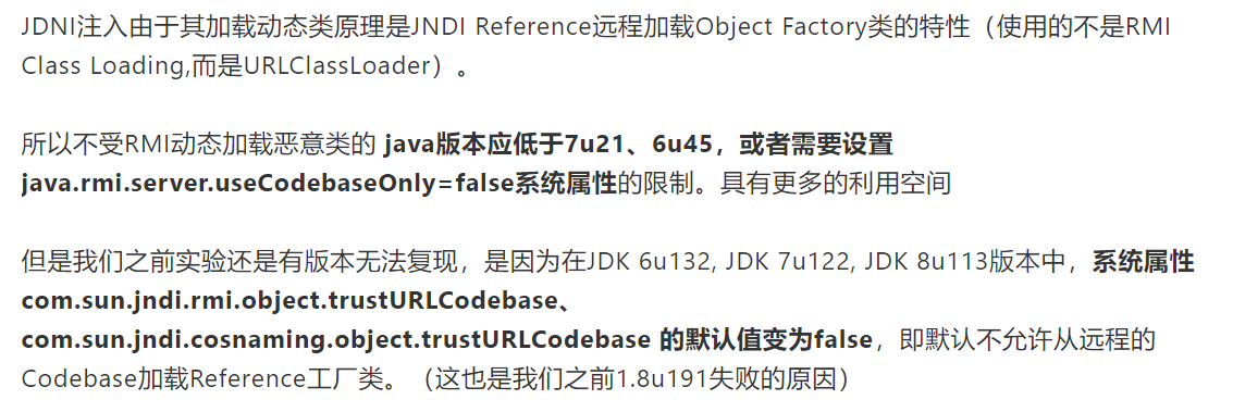 导致了JNDI注入利用RMI的话,版本受到了极大的限制。