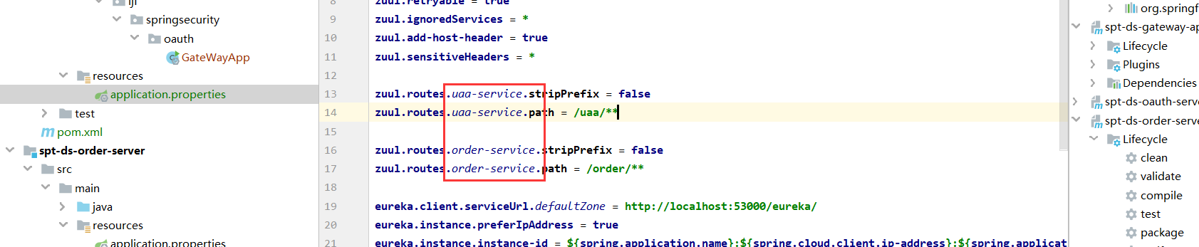 请求url若符合/uaa/**表达式,将被被转发至uaa-service(授权服务)。 ???????