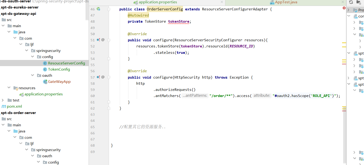 将order服务工程中的: ResouceServerConfig配置文件复制过来。