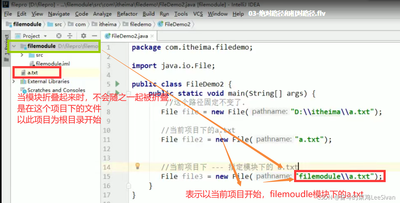 ? ? ? ? // 是一个简化的路径,从当前项目根目录开始 ? ? ? ? File file2 = new File("a.txt"); ? ? ? ? File file3 = new File("模块名\\a.txt"); ? ? } }