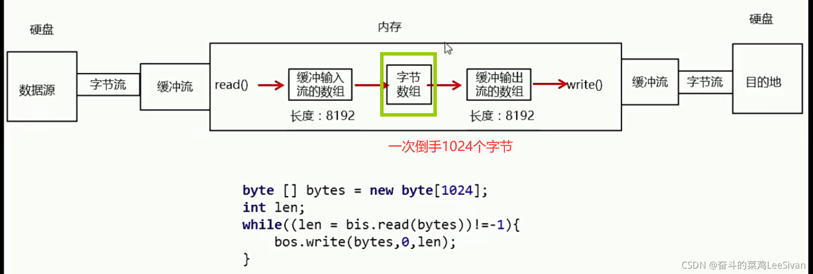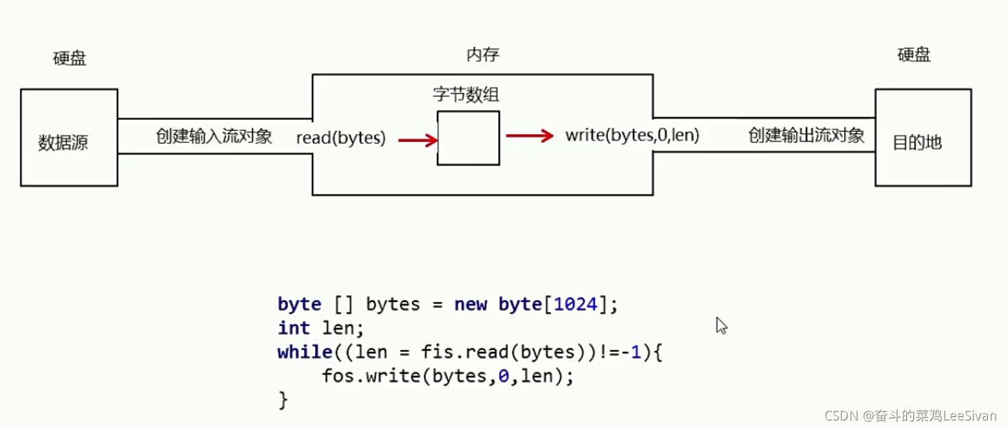 byte [] bytes = new byte[1024];【相当于一个买鸡蛋的篮子,通过篮子批量往里装进行输送】