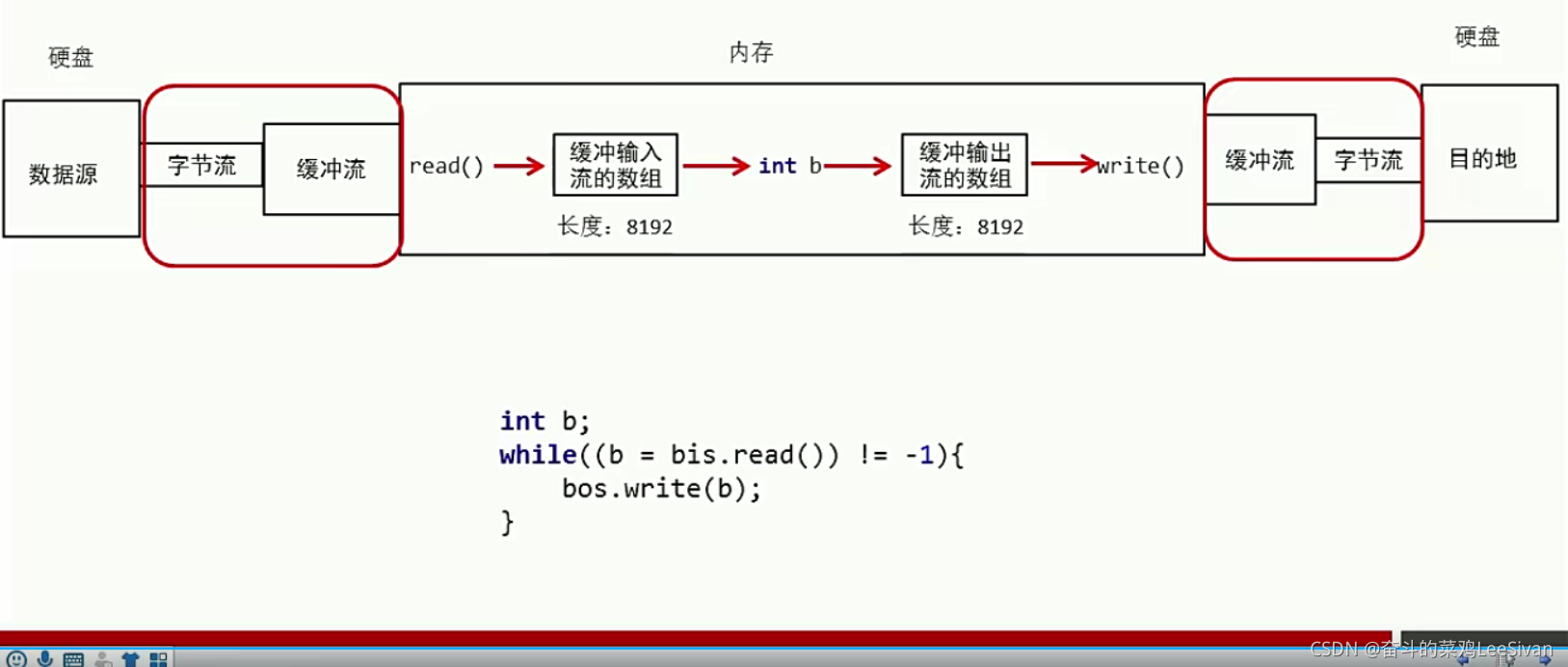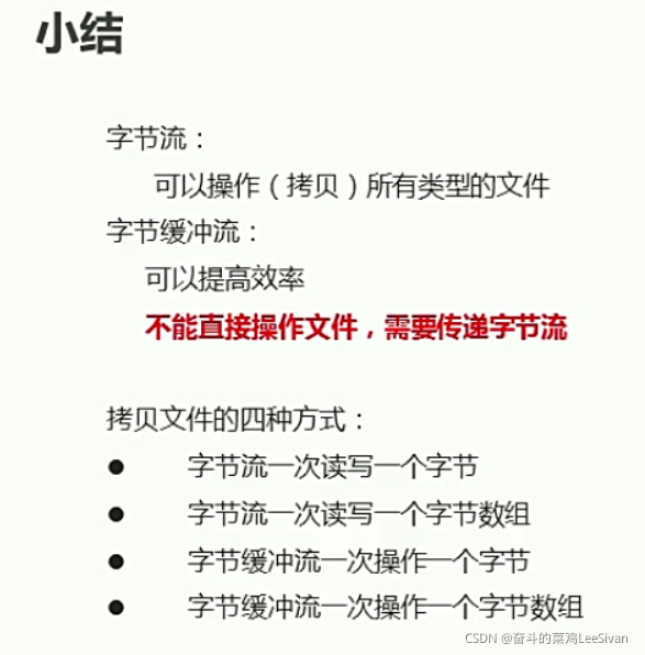 【参数传递是字节流,来指定文件路径位置,真正干活的是字节流,而缓冲流只是提供了一个提高效率的功能】