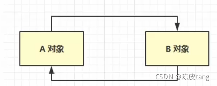 当一个对象被引用时,就当引用对象的值加一,当值为 0 时,就表示该对象不被引用,可以被垃圾收集器回收。 这个引用计数法听起来不错,但是有一个弊端,如下图所示,循环引用时,两个对象的计数都为1,导致两个对象都无法被释放。