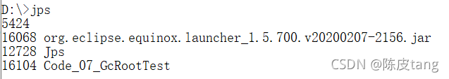 对于以上代码,可以使用如下命令将堆内存信息转储成一个文件,然后使用 Eclipse Memory Analyzer 工具进行分析。 第一步: 使用 jps 命令,查看程序的进程