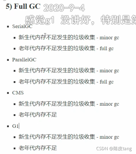??? 并发标记必须在堆空间占满前完成,否则退化为 FulGC--经量避免fullGC的产生 ??? JDK 9 之前需要使用 -XX:InitiatingHeapOccupancyPercent --当老年代内存占用超过阈值,就GC,但是阈值固定,默认45% ??? JDK 9 可以动态调整 ??????? -XX:InitiatingHeapOccupancyPercent 用来设置初始值 ??????? 进行数据采样并动态调整 ??????? 总会添加一个安全的空挡空间