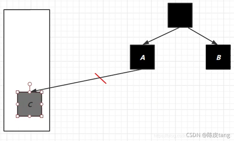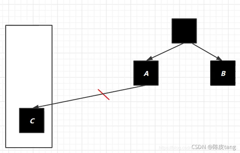 由根逐一处理标记,到C时,由于并发,切换到用户线程,结果用户线程将B-C的应用断开,线程回到并发标记后,C被标记为白(没有强引用),然后再清理时被清理