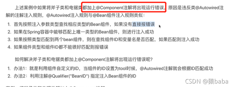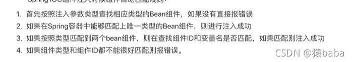 /*Spring 会自动根据变量类型匹配Bean组件的类型
