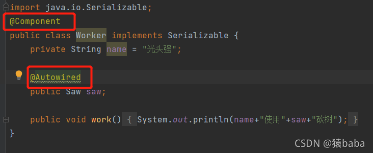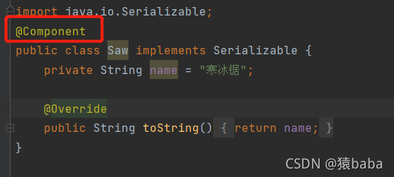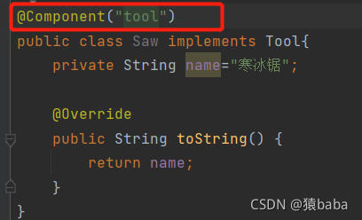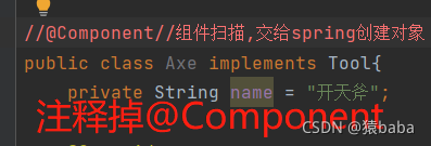 ?第六步:如果想使用电锯类,就要把@Component添加到电锯类上,去掉斧子类的@Component组件扫描
