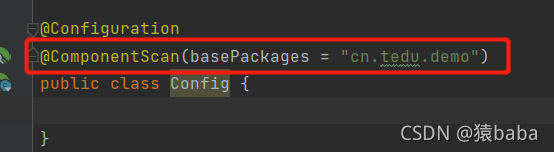 @ComponentScan("cn.tedu.demo")//配置类扫描包,spring为其包下的类创建对象