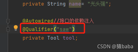 假如想使用电锯,就要在依赖注入接口再添加@Qualifier("saw"),指定使用电锯对象