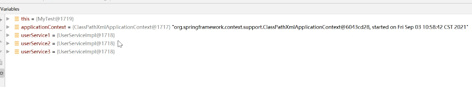 ?好了,接下来再debug看一下,这不就引用同一个userDao组件了吗嘿嘿
