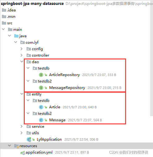 实现方式:不同的package下面的接口函数自动注入 不同的数据源
