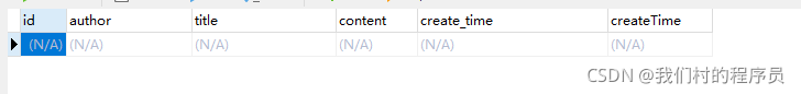 CREATE TABLE `article` ?( ? `id` bigint(32) NOT NULL AUTO_INCREMENT, ? `author` varchar(32) CHARACTER SET utf8 COLLATE utf8_general_ci NULL DEFAULT NULL, ? `title` varchar(32) CHARACTER SET utf8 COLLATE utf8_general_ci NULL DEFAULT NULL, ? `content` varchar(512) CHARACTER SET utf8 COLLATE utf8_general_ci NULL DEFAULT NULL, ? `create_time` datetime(0) NULL DEFAULT NULL, ? `createTime` datetime(6) NULL DEFAULT NULL, ? PRIMARY KEY (`id`) USING BTREE ) ENGINE = InnoDB AUTO_INCREMENT = 21 CHARACTER SET = utf8 COLLATE = utf8_general_ci ROW_FORMAT = Dynamic; ?