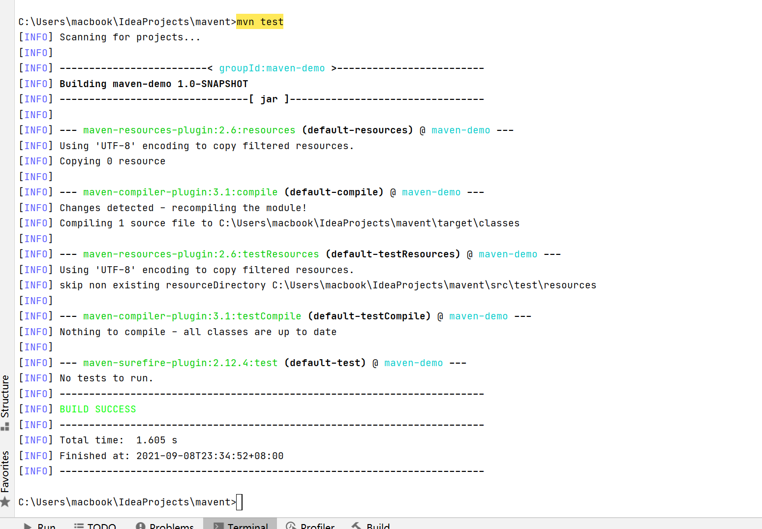maven test,maven会显示测试结果,如果测试正确,会显示如下:  此时target目录中还会生成测试结果文件。