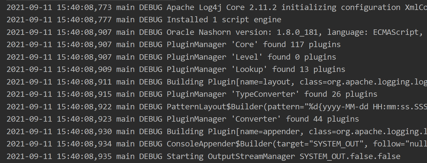 <PatternLayout pattern="%d{yyyy-MM-dd HH:mm:ss.SSS} [%t] %-5level %logger{36} - %msg%n"/>